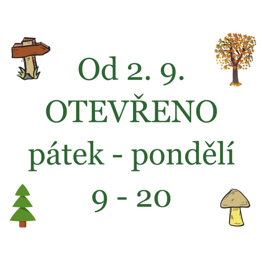 Od 2. 9. máme otevřeno 4 dny v týdnu.