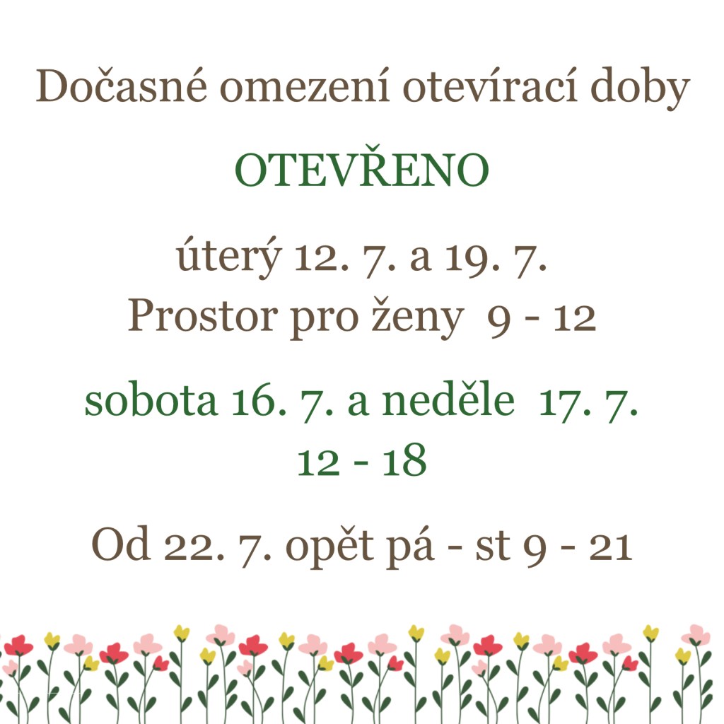 Od 2. 9. máme otevřeno 4 dny v týdnu.